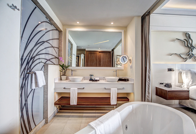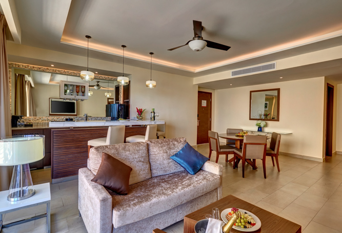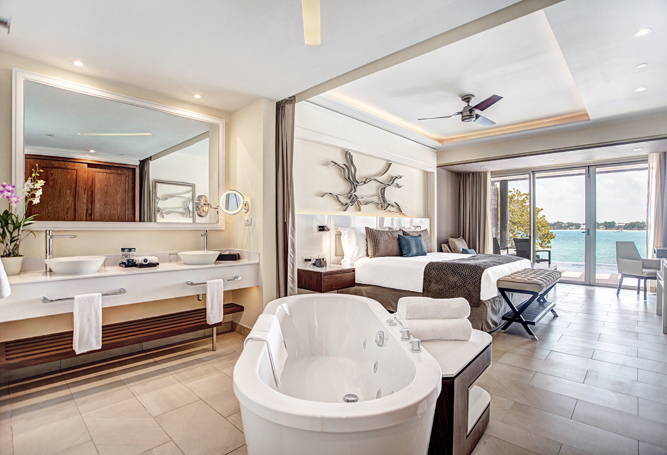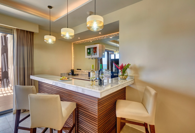 Lido Luxury Extras include: 26 elegantly styled suites, Butler Service, unlimited dining and premium drinks, modern tech features of free highspeed Wi-Fi resort wide, in-room Bluetooth speakers, USB re-charge stations, free calls to North America and most of Europe, satellite television with specialty channels and plenty of daily entertainment with nightly shows at the neighboring resorts. Also, a selection of premium services are offered at Grand Lido and include the ease of Butler Service, a secluded pool, Reggae Bar and Grill as well as all modern amenities at neighboring Royalton Negril or the adults-only Hideaway at Royalton Negril. • Butler Service • Preferential reservations in à la carte restaurants • Exclusive dry beach for Grand Lido Guests with waiter service • Private Jacuzzi overlooking the ocean • Distinctive wrist bracelet • Selection of in-suite liquors • Personalized check-in and check-out • Hors d’oeuvres and snacks served poolside daily • Upgraded room service menu • Minimum 21 years of age • Club MoBay Service: At Sangster International Airport guests receive fast track and personalized meet & greet services plus access to an exclusive Lounge • Private Airport Transfers: Presidential Suite guests receive free airport transfers both to and from Grand Lido* • Reggae Bar & Grill exclusive to Grand Lido • Full access to all inclusive amenities at two nearby luxury Resorts.